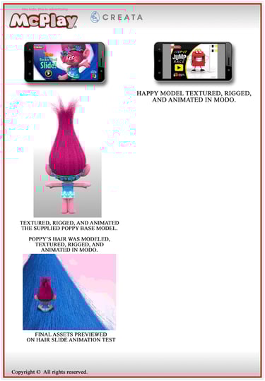 Provided Character Design, 3D Models, Rigging, Animation, Storyboards, Sets, Props, and (5) 30 sec Promotional Videos.